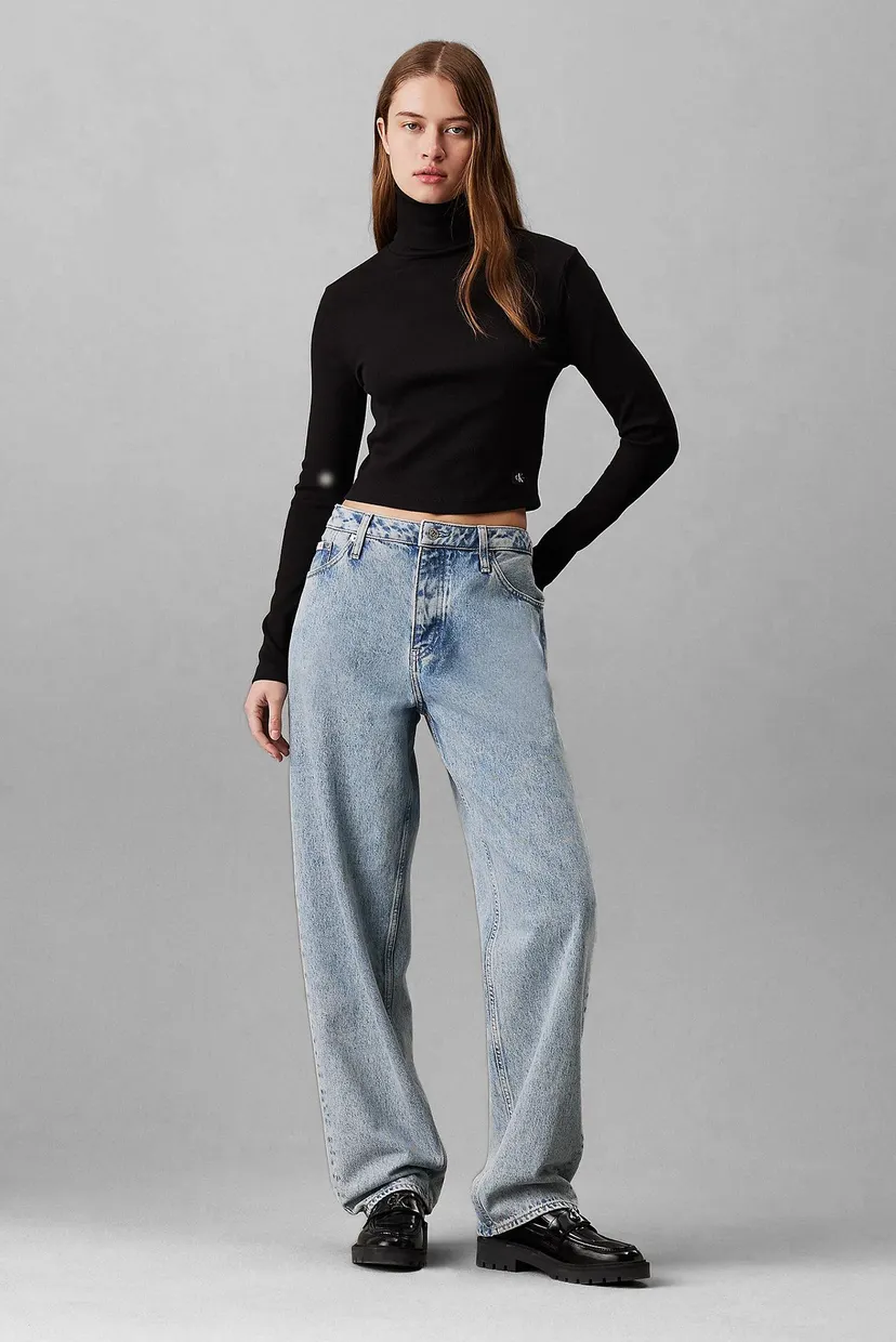 Uzun yengli futbolka WOVEN LABEL RIB ROLLNECK